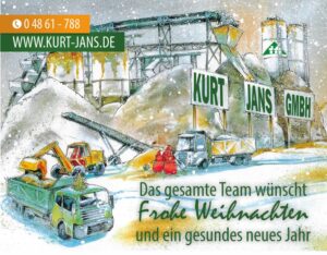 Die Kurt Jans GmbH ist ein Unternehmen aus Tradition. Seit 1932 werden Kunden wie Tief- und Hochbauunternehmen, Baumärkte, Gartenbaubetriebe und Privatpersonen beliefert. Speziell werden für die Kunden Friesenwälle, Straßenbaumaterialien, Beton- zuschlagstoffe und Mutterboden angeliefert.